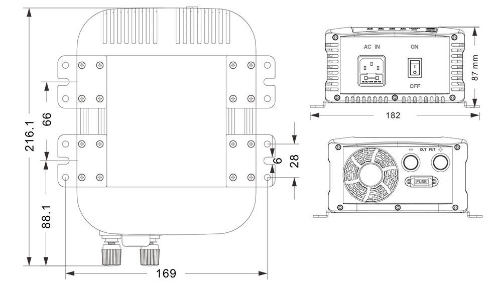 Desenhos Mecânicos:(216,1×182×87mm)