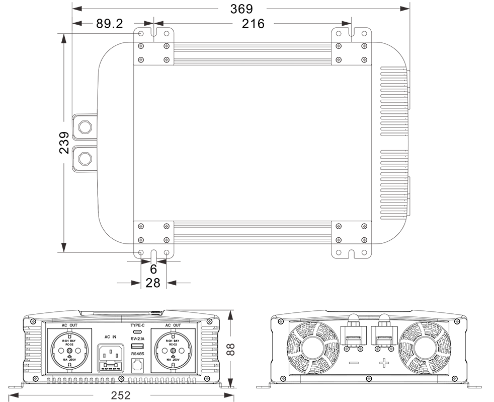 Desenhos Mecânicos:(369x252x88mm)