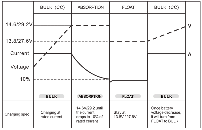 Controle de bateria (carregadores de bateria de 3 estágios) Granel/Absorção/Flutuação