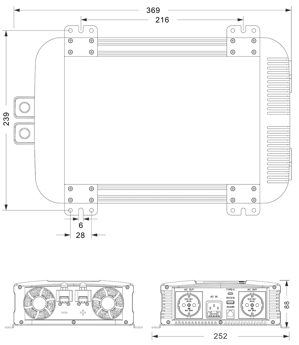 Outros Dimensão (L×A×P) 369×252×88 milímetros