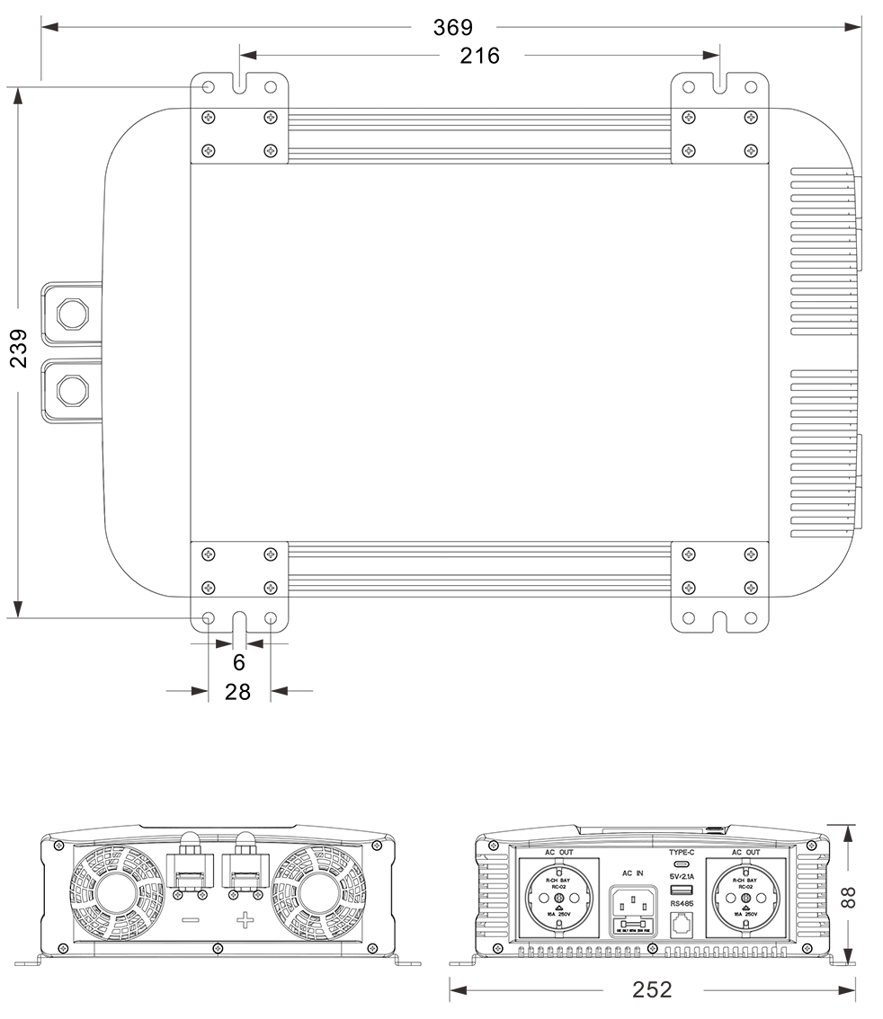 Desenhos Mecânicos:(369x252x88mm mm)