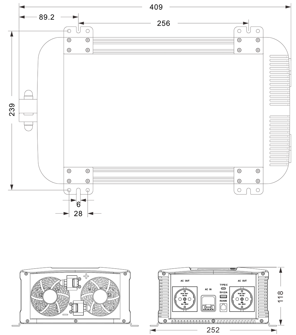 Desenhos Mecânicos:(409x252x118mm mm)