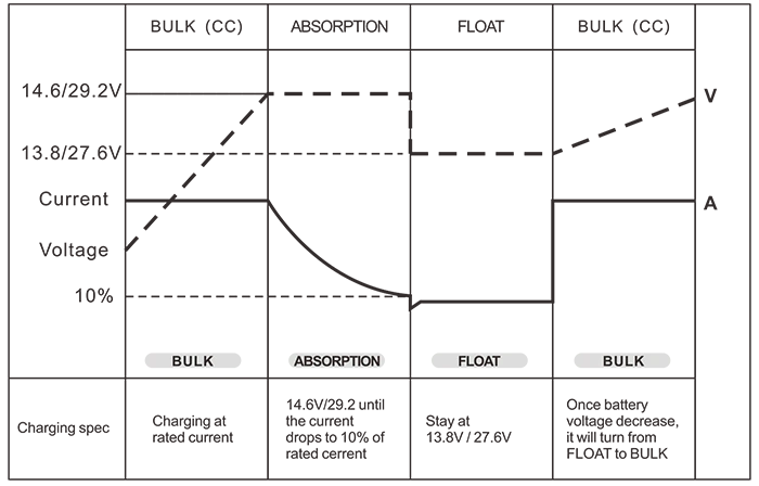 Controle de bateria (carregadores de bateria de 3 estágios) Granel/Absorção/Flutuação